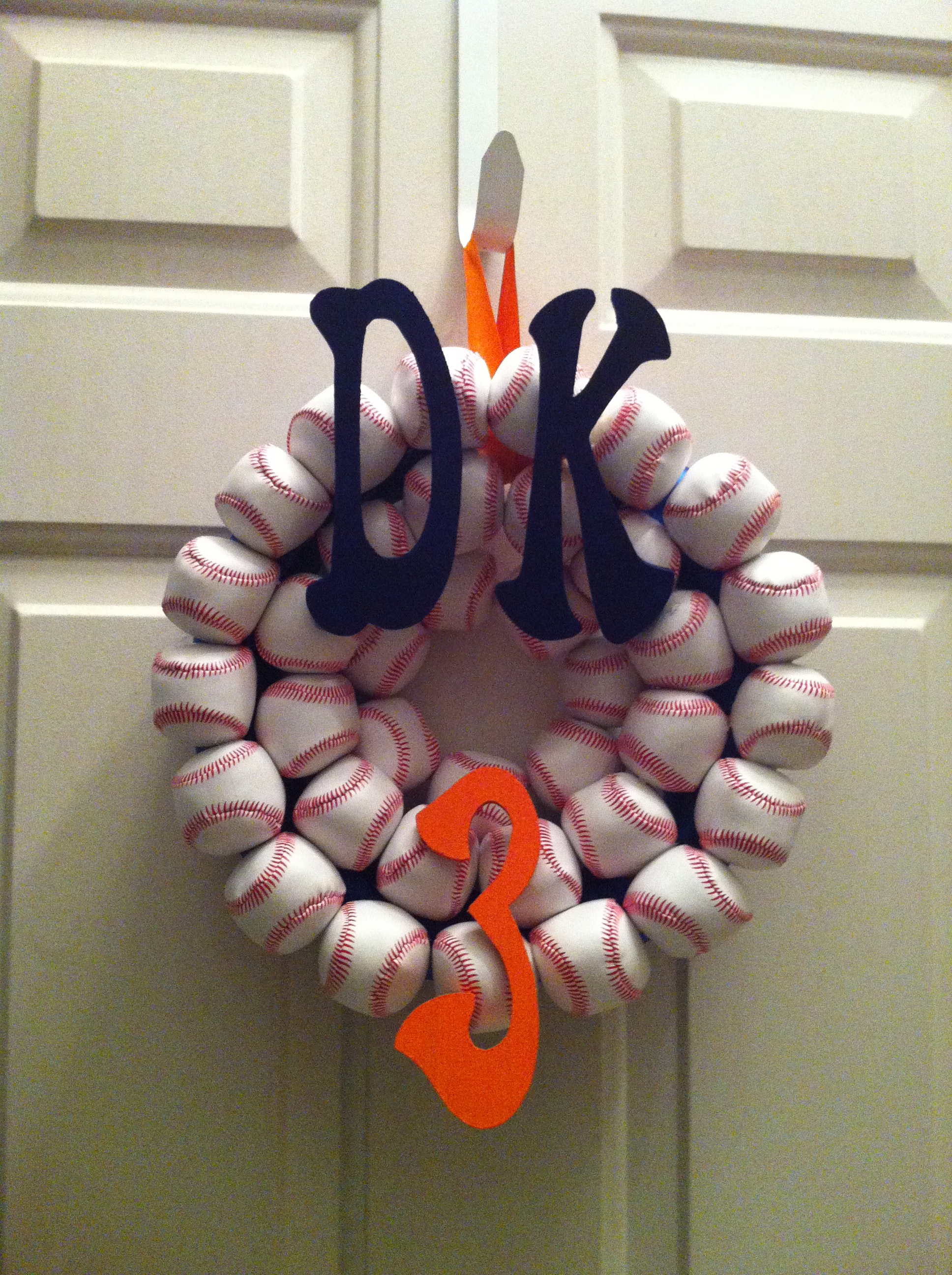 Create a DIY Baseball wreath for your door to showcase your child’s baseball team and number. #verifiedmom @ www.verifiedmom.com